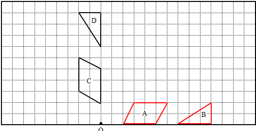 (2)任意画出平行四边形A、三角形B,再把所画图形绕任意一个顶点O按逆时针方向旋转90度,并画出旋转后的平行四边形C、三角形D.
