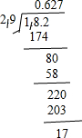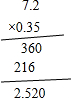 | 7.2×0.35 | 80÷25 | 1.82÷2.9(得数保留两位小数) |