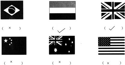 判断下面的国旗是否是轴对称图形.(是的打“√”,不是的打“×”)