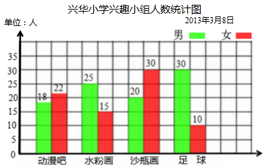 人数项目 性别 | 动漫吧 | 水粉画 | 沙瓶画 | 足球 |