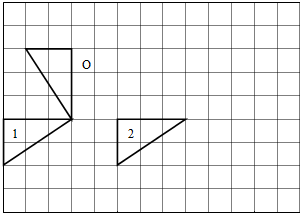 把三角形先绕O点逆时针旋转90°,再向右平移5格.