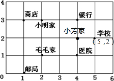 (2)小芳家的位置是(4,2),请你在地图上标出来.