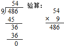 (3)486÷9=54