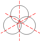 下面这个三环图案漂亮吗?请你画出它所有的对称轴.
