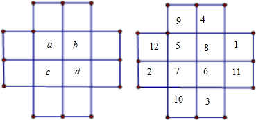 分析:如下图所示,假设中间正方形的四个方格的数字是a、b、c、d,在每个2×2的正方形中的四个数字的和时,中间正方形的四个方格的数字被加了3遍,每个正方形四个方格的数字之和相等设为m,由题意,得:1+2+3+…+12+(a+b+c+d)×2=5m,又因为a、b、c、d也在一个正方形上,所以a+b+c+d=m,代入第一个等式,即可得解.