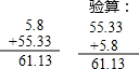 | (1)5.46+4.72= | (2)105.5-5.94= | (3)5.8+55.33= |