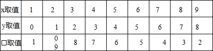 综合(1)(2)对x、y、□的取值进行列表让他所示: