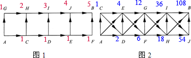 (1)按图1所示,从A点走到B点的不同路线有多少条?