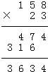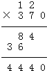 | 209×32= | 158×23= | 12×370= |