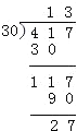 | 960÷12= | 863÷22= | 417÷30= |