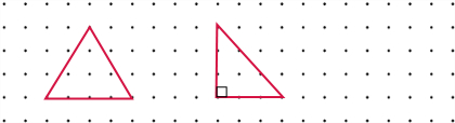 在下面的点子图上画一个等腰直角三角形和一个等腰锐角三角形.