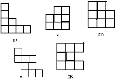 用4个边长为1的正方形拼成图1~图5,请用图1分别与其余4个图形拼成轴对称图形,请画出所有可能拼法的示意图.