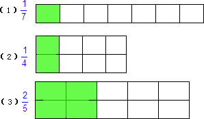 点评:本题是考查分数的意义及写法,属于基础知识.把单位“1”平均分成若干份,用分数表示,分母是分成的份数,分子是要表示的份数.