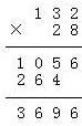 | 132×28= | 109×57= | 640×39= | 760×80= |