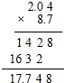 | 列竖式计算. 3.8×0.15= | 4.6×50= | 8.7×2.04= | 13.2×9.8= |