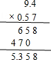 9.4×0.57=5.358![]()