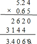 解答 解:5.24×0.65=3.406![]()