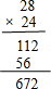 分析:①28乘个位上的4是112,28乘十位上的2是56,112+56=672,所以,原题错;