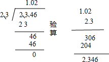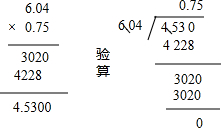 | 0.75×6.04=除法验算: | 2.346÷2.3=验算: |