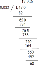 | 1.47÷0.082=保留两位 | 82.3÷27=用循环小数表示. |