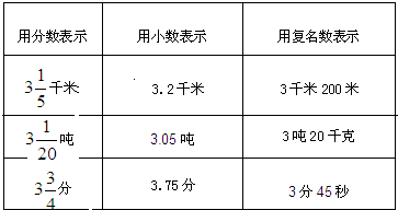 | 用分数表示 | 用小数表示 | 用复名数表示 | ||