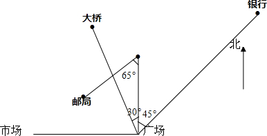 (4)“银行”在广场的东偏北45°方向,图上距离为1200÷200=6厘米.