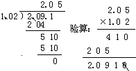 2.091÷1.02=2.05