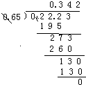 0.2223÷0.65  (商精确到百分位)