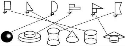 下面各图形绕轴旋转一周得到的各是什么图形?请你连一连.