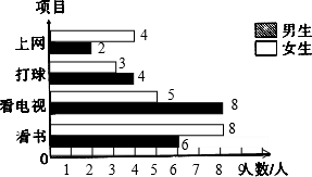 | 项目 人数/人 性别 | 看书 | 看电视 | 打球 | 上网 |