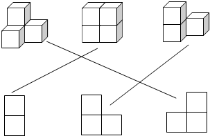 分析:观察图形可知,从右面看:第一个图形看到的是2层:下层2个正方形,上层1个靠右边;第二个图形看到的是一列2个正方形,第三个图形看到的是2层:下层2个正方形,上层1个靠左边,据此即可连线.