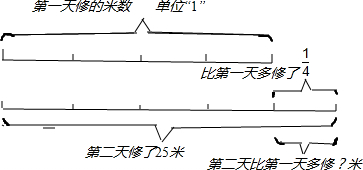 一个修路队,第二天修路25米,比第一天多修了