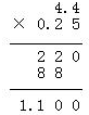| 4×0.4= | 0.12÷0.04= | 0.8×100= | 2.5×4= | 23×0.01= |