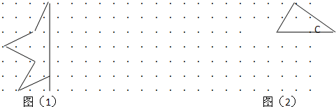 画出图(1)的另一半,使它成为轴对称图形.将图(2)绕点C逆时针旋转90度,再向左平移3格.