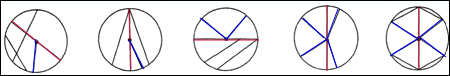 用彩色笔描出下面每个圆的直径和半径.