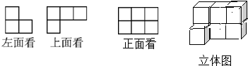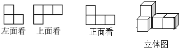 物体由4个正方体摆成,下面3个,上面1个,从正面看是,从右面看是从上面看是,这个物体是______.