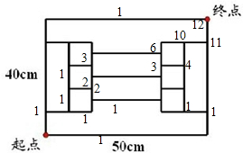 如图是一个电子小虫的玩具盒.玩具盒是一个长方形,其长为50厘米,宽为40厘米.电子小虫的爬行速度是每秒3厘米.如果他只能沿着图中的直线爬行,那么它从起点到终点用时30秒的走法有