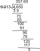 4.65÷0.013=