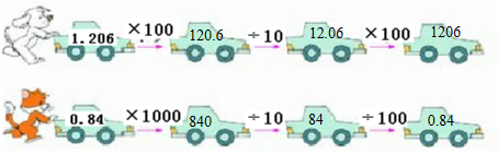分析:根据小数点位置移动引起数的大小变化规律:一个数的小数点向右(向左)移动一位、两位、三位…,这个数就比原来扩大(缩小)10倍、100倍、1000倍…反之也成立.