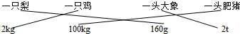 (2)依据生活经验可知:一只梨最轻,一头大象最重,据此解答.