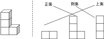 解答: 解:(1)从正面看到4个正方形的面,从上面看到2个正方形的米,从侧面看到3的正方形的面.