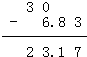 | 列竖式计算: ①13.7+0.84= | ②0.91-0.284= | ③30-6.83= |