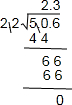 (3)2÷22=0.$\stackrel{.}{0}$$\stackrel{.}{9}$(商用循环小数表示)![]()