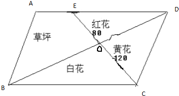 绿岛花园小区内有1个平行四边形的花圃,如图所示,已知红花占地80平方米,黄花占地120米,BD是对角线,与CE交于点O,草坪ABOE的面积是多少平方米?