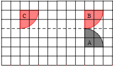 以虚线为对称轴作图形A的对称图形B,再将图形B向左平移7格得到图形C.