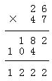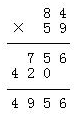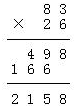| 83×26= | 33×66= | 84×59= | 26×47= |