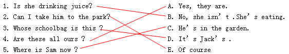 5.Where is Sam now ?Sam现在在哪儿? C He’s in the garden.他在花园里。