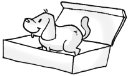 The dog is under the box. (_____)