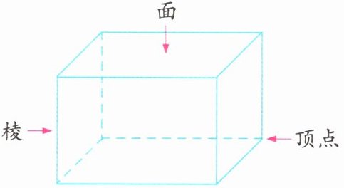 两个面相交的线叫作棱,三条棱相交的点叫作顶点。