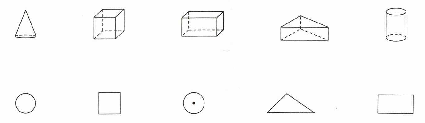 三、从上面看,下面各物体分别是什么形状?连一连。